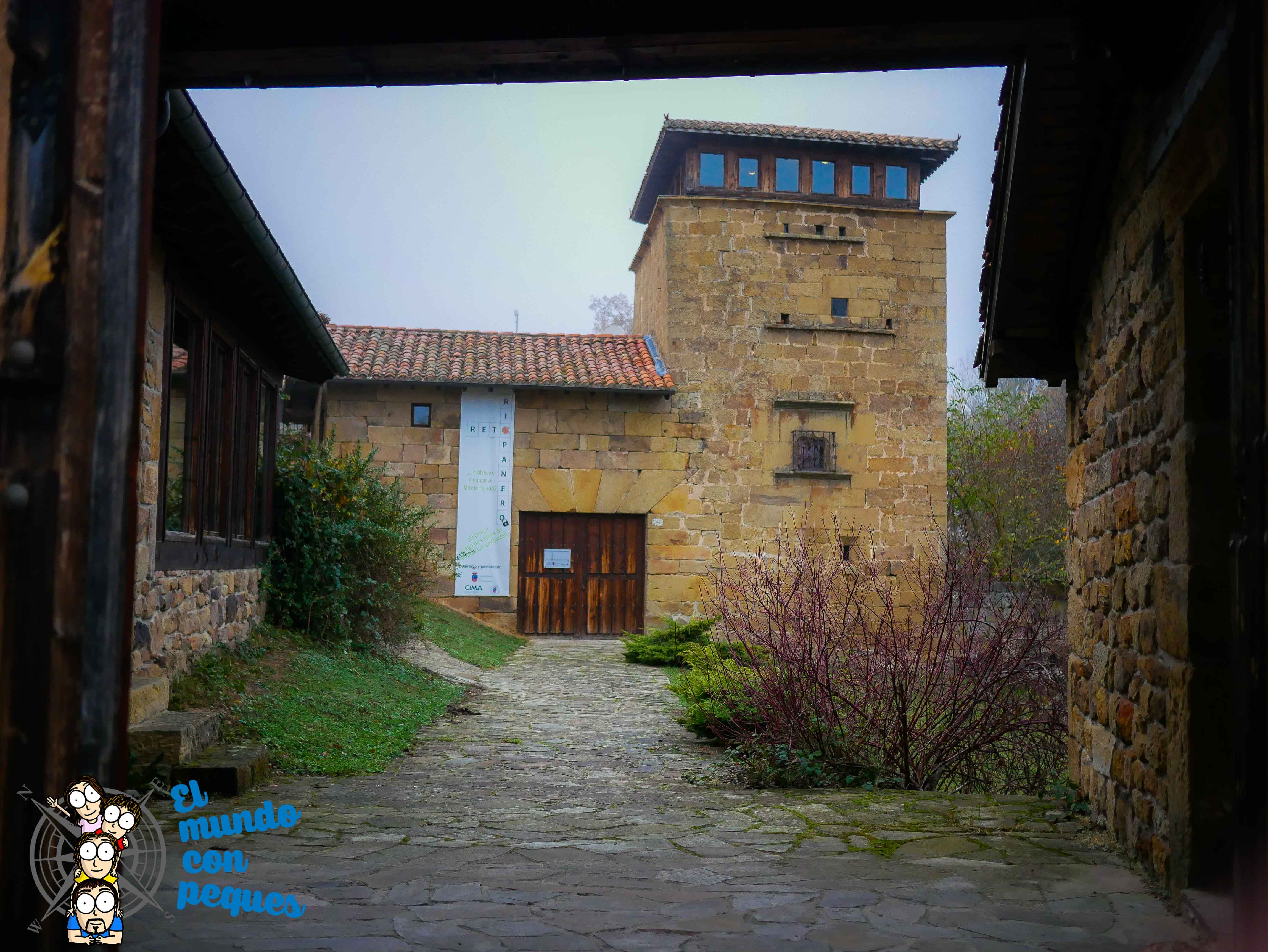 Se trata de una casa-torre rodeada de otros pequeños edificios que en su día tuvieron otro función, cuadras, corrales, graneros o incluso vivienda y que hoy están organizadas para enseñarnos cómo el hombre ha utilizado el bosque en la historia, fuente de energía, materia prima y casa y alimento de muchos animales.