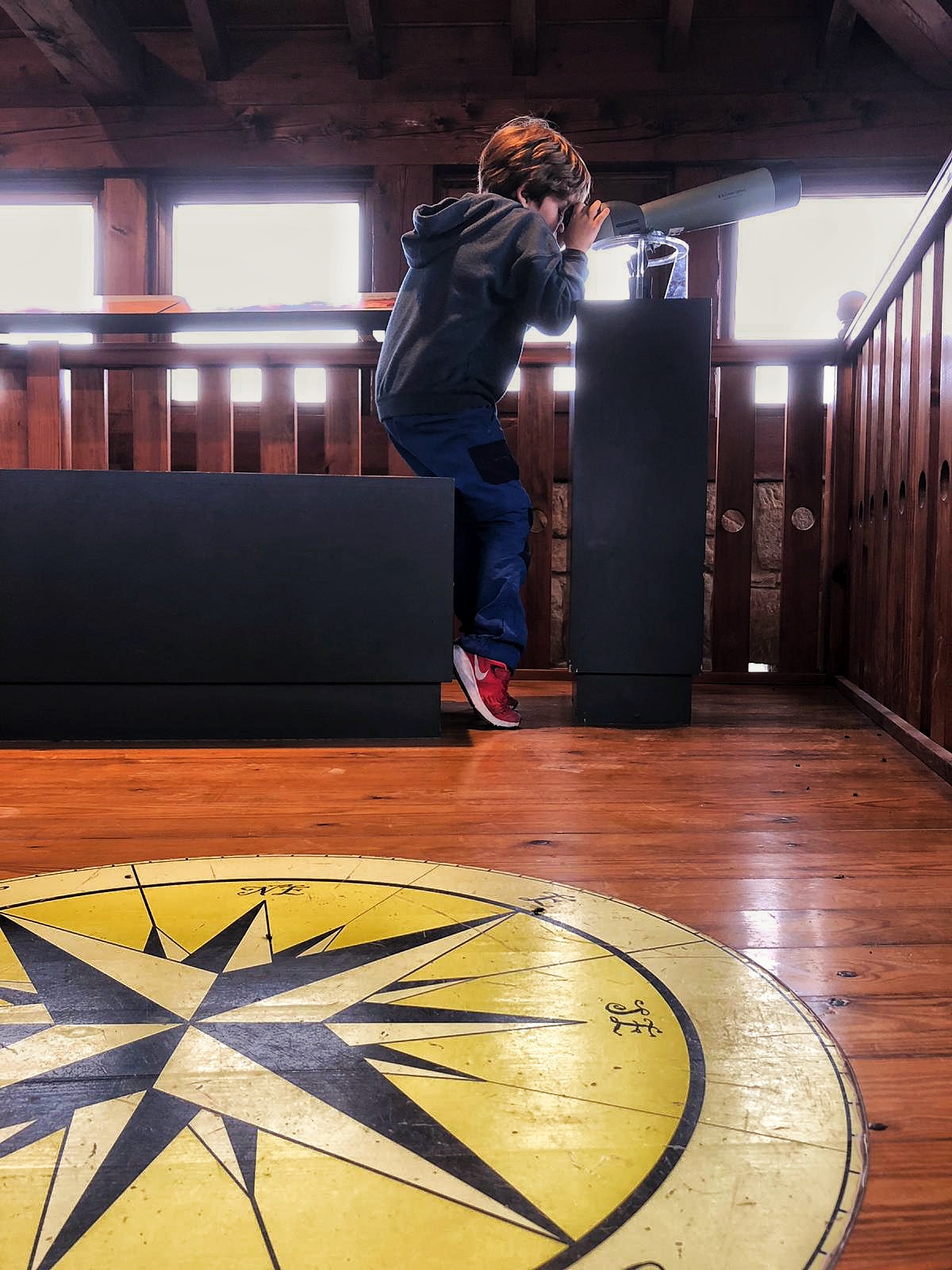 En la última planta podemos hacer otra de las actividades que a los peques les encantan, observar el paisaje a través de dos telescopios. Podremos observar el paisaje y si tenemos suerte también algún ave posada en las ramas de los árboles.