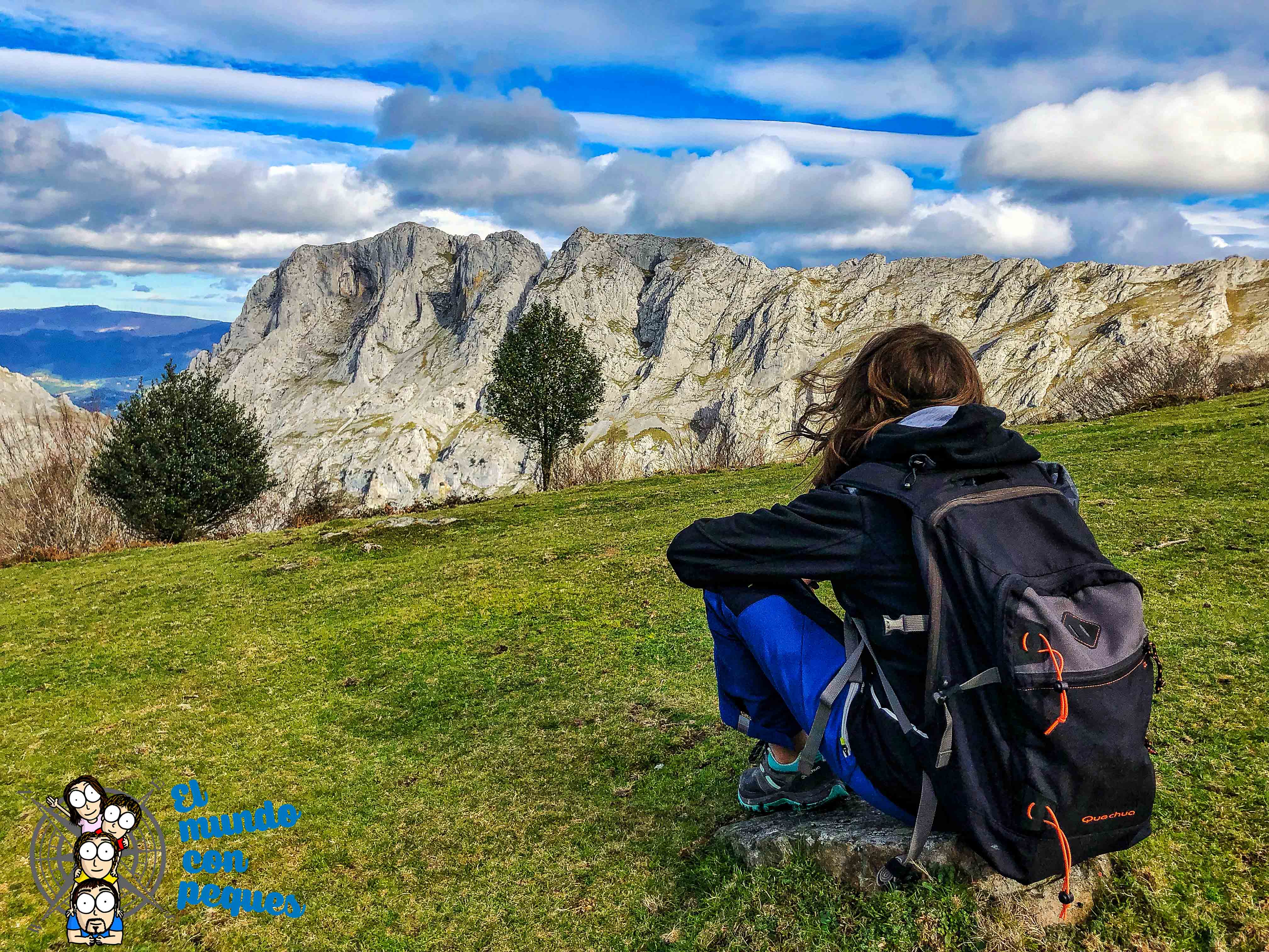 Seguimos andando, siempre hacia arriba, porque el pequeño desnivel de esta ruta se realiza todo a una, sin descanso, hasta llegar a la cima de urkiolagirre. 1008m de una de las mejores vistas que podrías soñar. Éste es un buen lugar para dejar descansar a nuestros locos bajitos, aunque en algunas ocasiones debamos buscar un refugio a sotavento que les haga entrar en calor y reponer fuerzas.